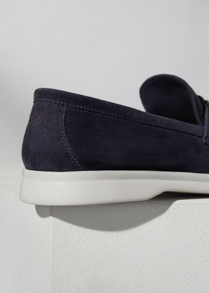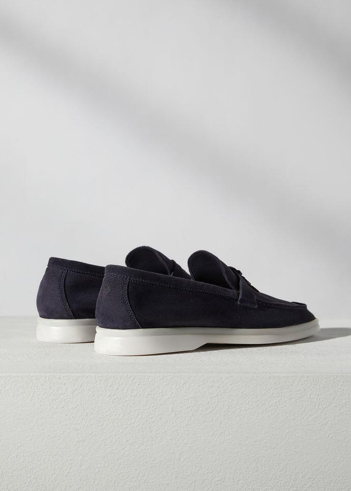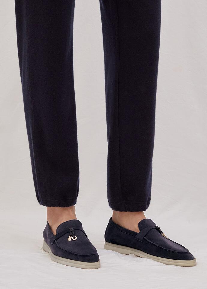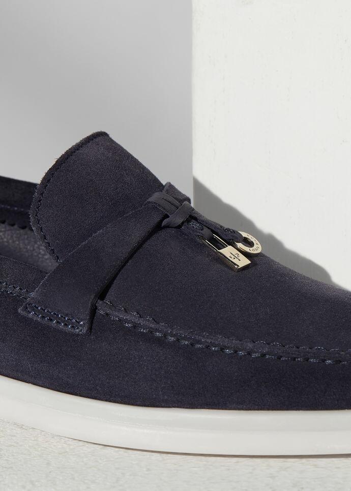 Supremely comfortable casual moccasin crafted from the softest unlined suede. The sole is in light-coloured rubber, a casual feature common to all Loro Piana footwear. Embellished with a band on the front accessorized with mini My Charms pendants. Perfect summer city wear that is equally at home at the coast or on deck.
