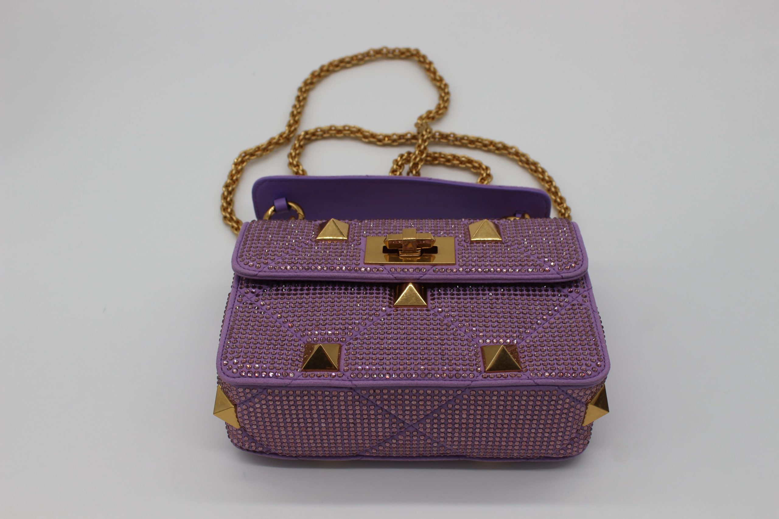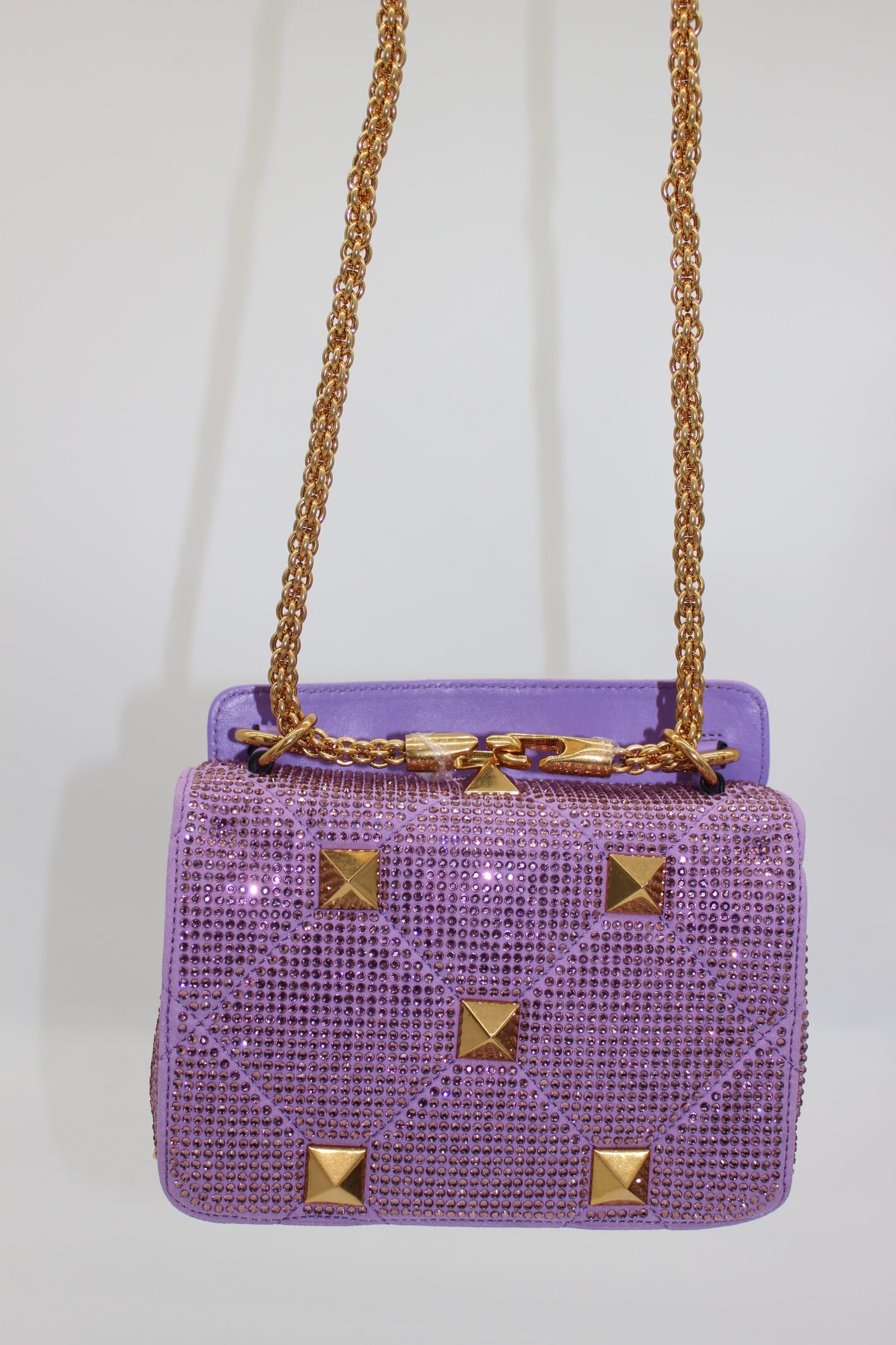 Valentino Garavani adds a touch of glamour to its signature ‘Roman Stud’ bag with this luxurious version. Crafted in Italy from quilted suede and lined in leather, this shoulder bag is adorned with tonal crystals that catch the light beautifully. The iconic pyramid-shaped hardware ensures a standout look.